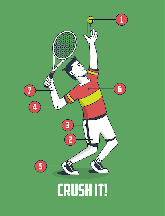 So if, for example, it feels like you're arming your serve, then I want to invite you to pick up a copy of "Crush It!," because inside Dr. Mark Kovacs shows you 26 drills that allow you to generate power from your entire body so that you can hit your serve, forehand, and backhand much, much harder.